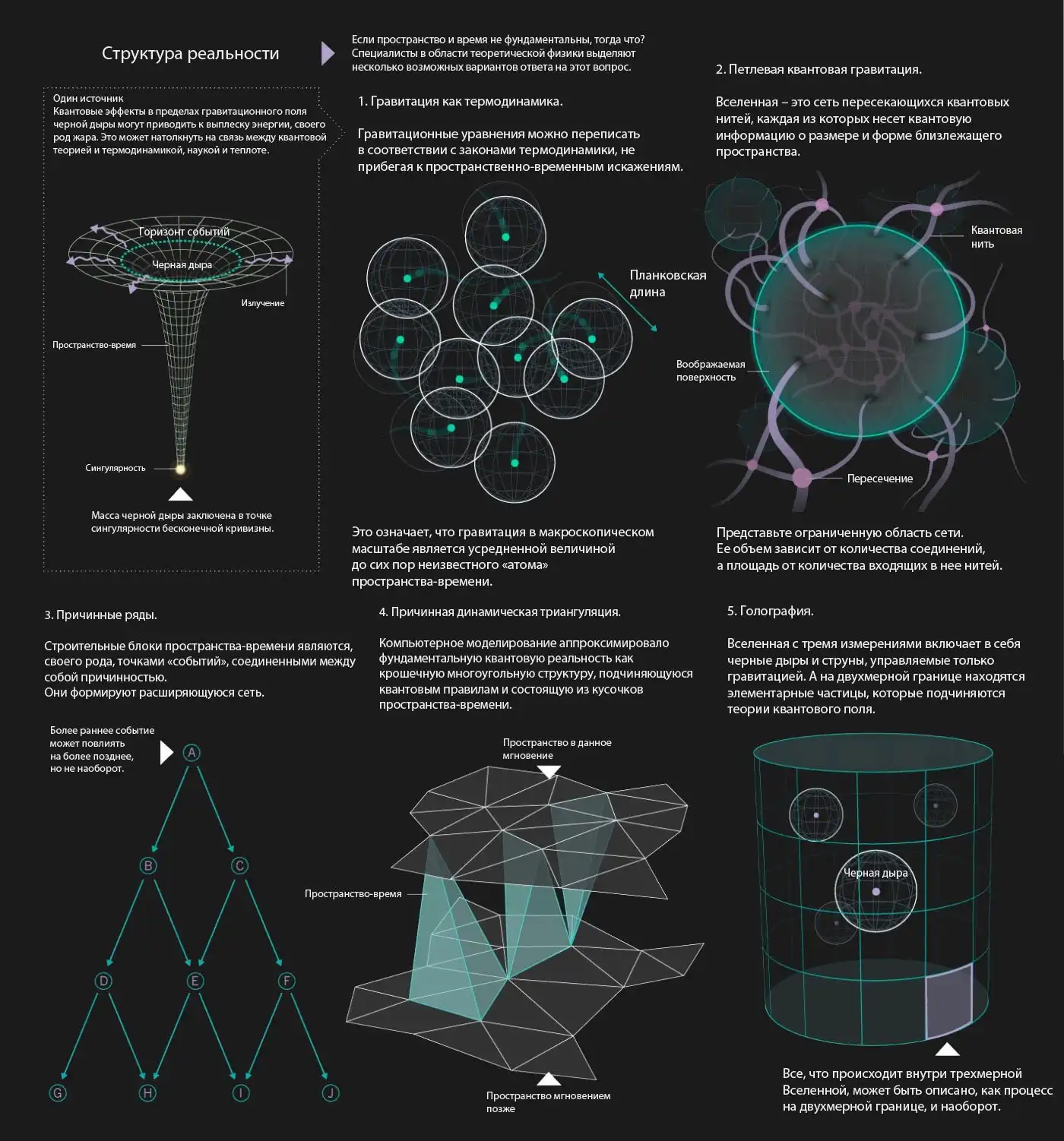 Этот «голографический принцип» довольно необычен для теоретической физики. Но Ван Раамсдонк является членом небольшой группы исследователей, которые считают, что это вполне нормально. Просто ни один из столпов современной физики: ни общая теория относительности, которая описывает гравитацию как искривление пространства и времени, ни квантовая механика, не могут объяснить существование пространства и времени.