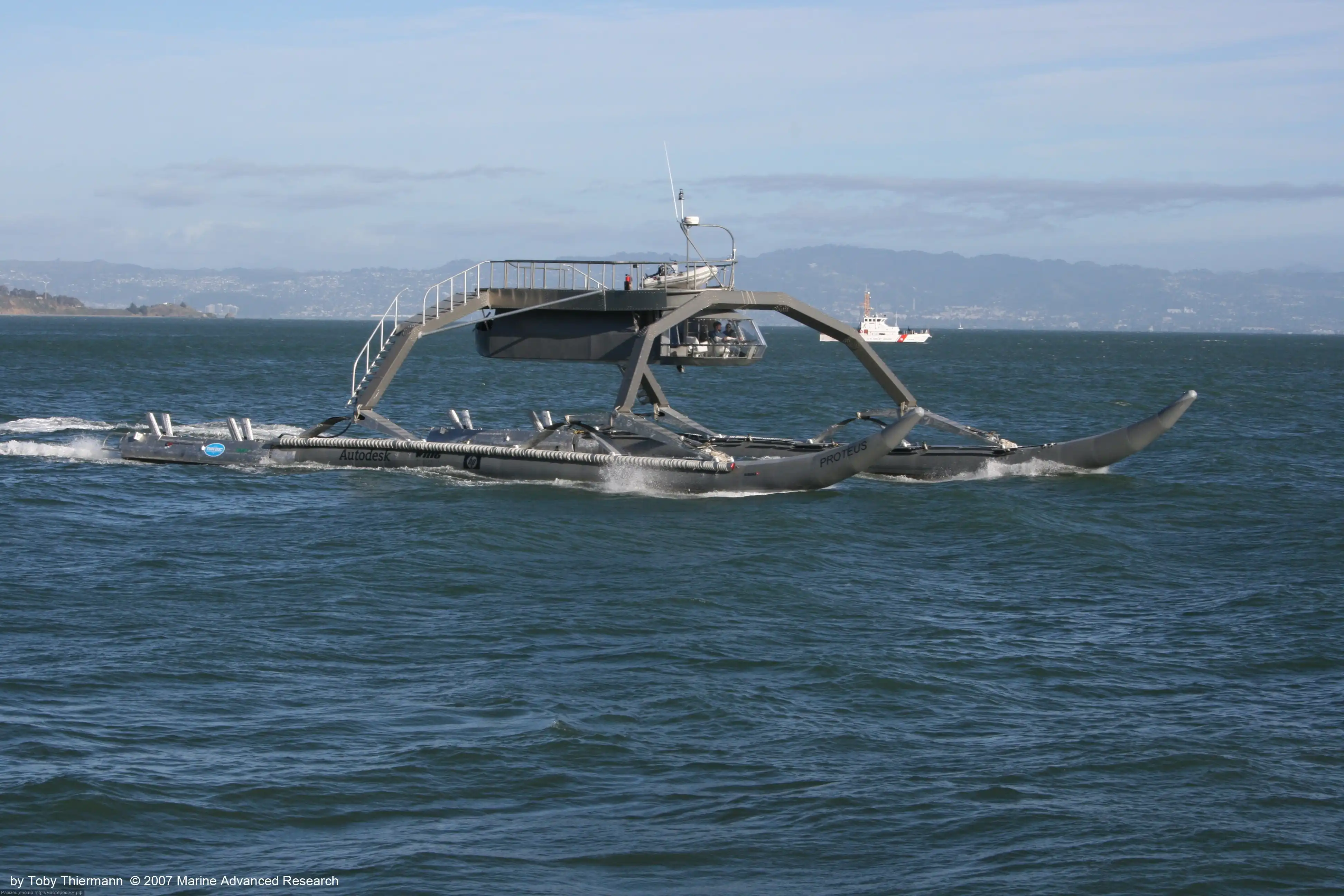 Судно несёт гордое имя Proteus, а по-русски Протей: древнегреческий морской бог-прорицатель, способный принимать любую форму. Мифологическое имя аппарат получил не зря. Создатели аппарата из американской компании Marine Advanced Reasearch называют Proteus первым полноразмерным судном «адаптирующегося к волнам модульного» типа (Wave Adaptive Modular Vessel — WAM-V).