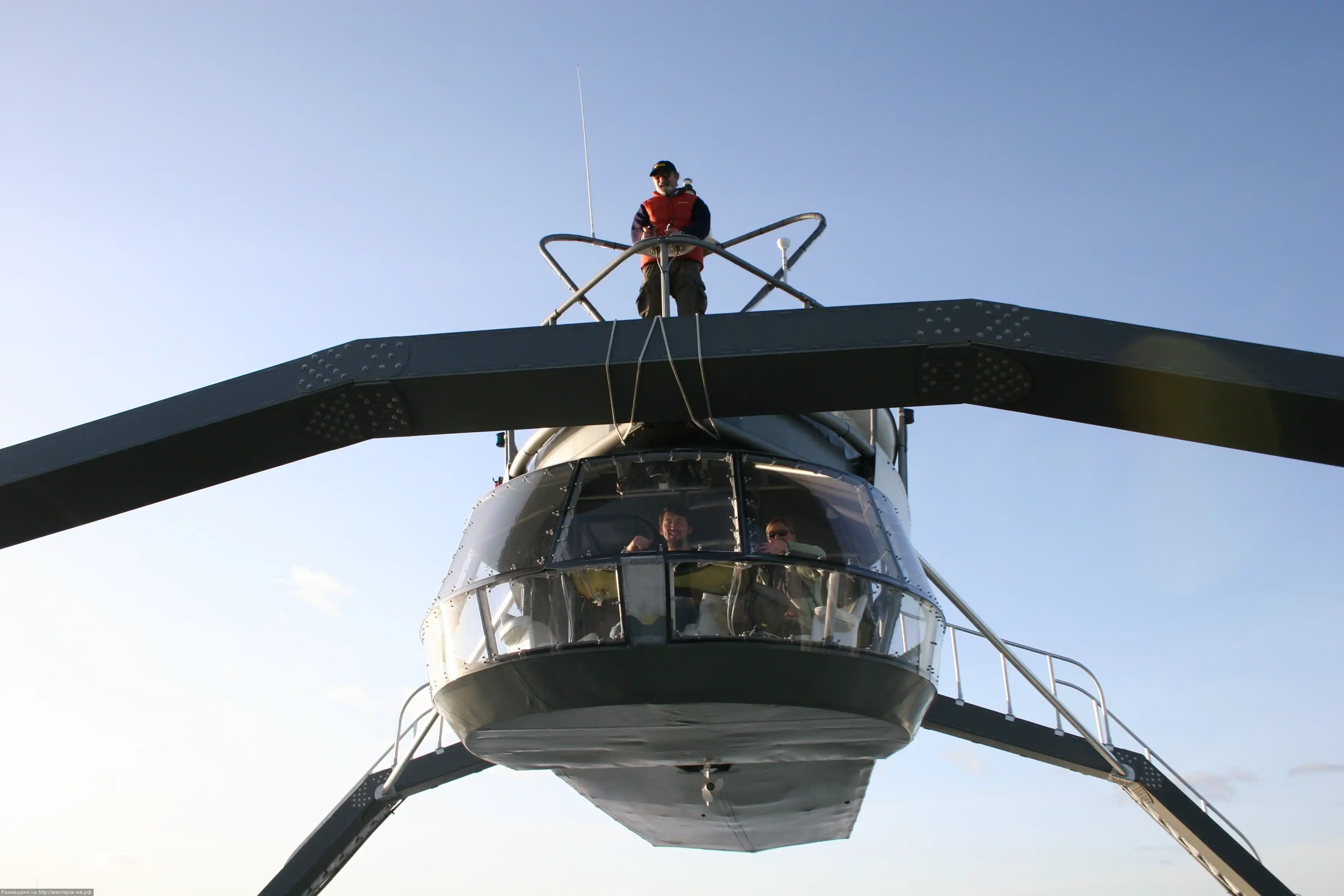 В одном из вариантов, как видим, кабина экипажа урезается до «головы». Собственно – какую именно кабину поставить на эти «ноги» – не столь важно. Главное – остаётся принцип. Кстати, отдельная кабина с «хребтом» позади, что на верхнем снимке, очень напоминает знаменитые вертолёты-краны «кисти» Камова и Сикорского. Видимо, не случайно (фотографии Marine Advanced Reasearch и San Francisco Chronicle/Paul Chinn).