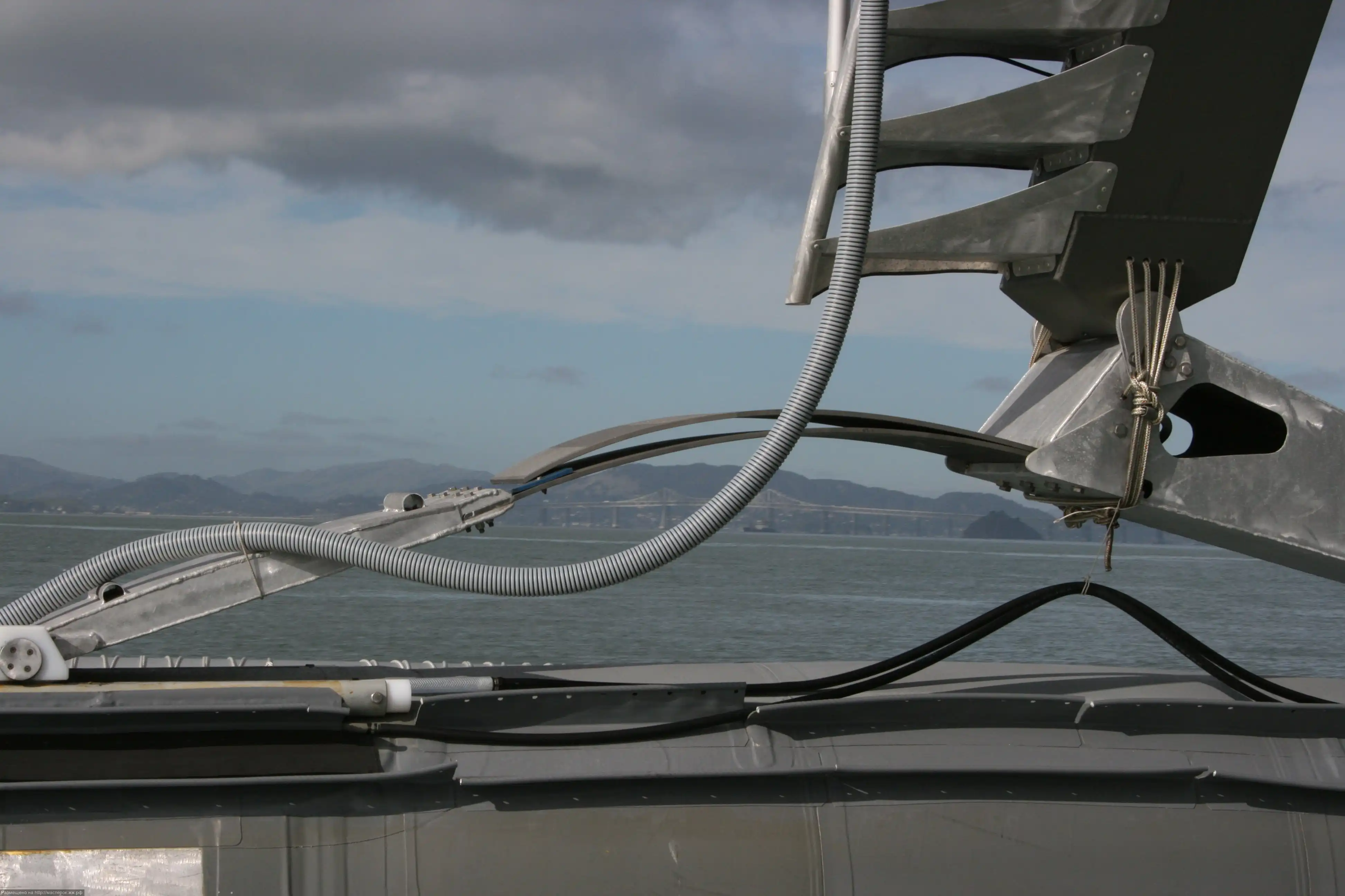 Схема основных частей Proteus. Крупным планом – его рессоры. Внизу: на этом снимке можно разглядеть всю подвеску поплавков (иллюстрация Marine Advanced Reasearch, фотографии just...eD/flickr.com и San Francisco Chronicle/Paul Chinn)