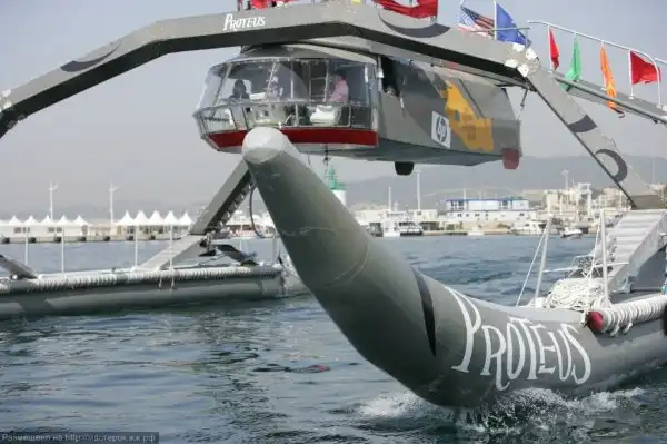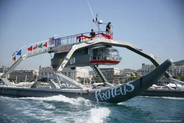 При этом Proteus может находиться в море много дней, а запас его хода составляет тысячи миль. Мореходность новаторской конструкции весьма высока, вместе с тем для этого судна не составит труда пробраться на мелководье. При половине загрузки осадка катамарана составляет всего 40 сантиметров. Причём его без повреждений можно вытаскивать на пологий берег.