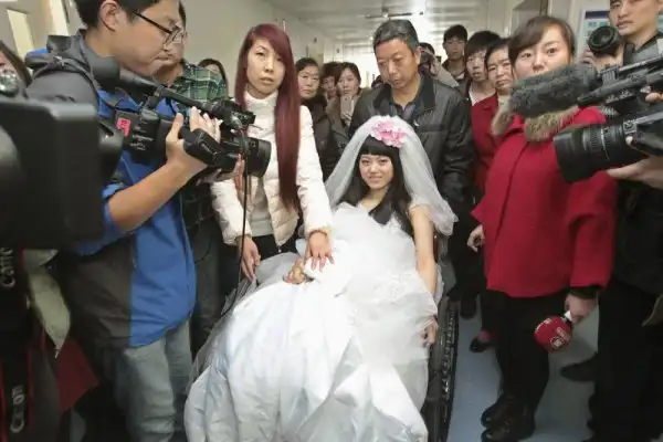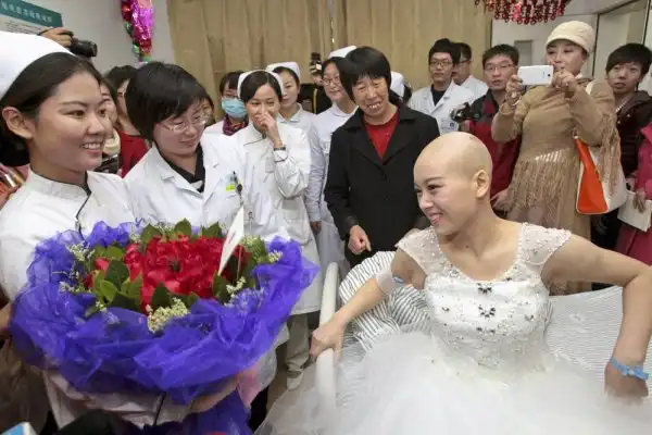 Рак 4 степени не остановил 25-летнюю Фань Хуэйсян выйти замуж. Из-за нестерпимых болей девушки, свадебное торжество прошло в больнице города Чжэнчжоу, Китай.