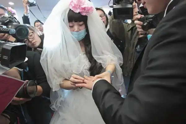 Во время торжества невеста сказала: "Каждая девушка мечтает выйти замуж. Глядя на себя в свадебном платье, я понимаю, что это лучший момент в моей жизни. Я не знаю, сколько мне осталось жить, но я хочу провести оставшуюся жизнь с Ю". Жених пообещал поддерживать любимую и он надеется, что их любовь сможет побороть болезнь