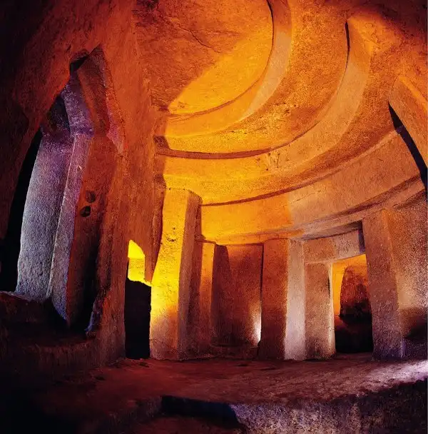 По некоторым оценкам археологов почти 6000-летний трехуровневый мальтийский храм Гипогей Хал-Сафлиени (Ħal-Saflieni Hypogeum, Paola, Malta) старше по возрасту сооружений Стоунхендж в Англии и самих Египетских пирамид в Гизе более чем на тысячу лет. Захоронение Гипогей, официально именуемое Hypogeum of Hal Saflieni, названо так по имени улицы, где оно было обнаружено в начале прошлого века. Гипогей в переводе с латинского означает «подземное жилище». Многие эксперты уверяют, что мальтийский Гипогей был построен как храм, огромный подземный храм смерти и рождения с запутанной системой уровней, ходов, залов и ловушек. Кроме того, в Гипогее обнаружены скелеты 30 тысяч человек эпохи позднего неолита и разные артефакты. Сейчас историки настаивают на признании его восьмым чудом света