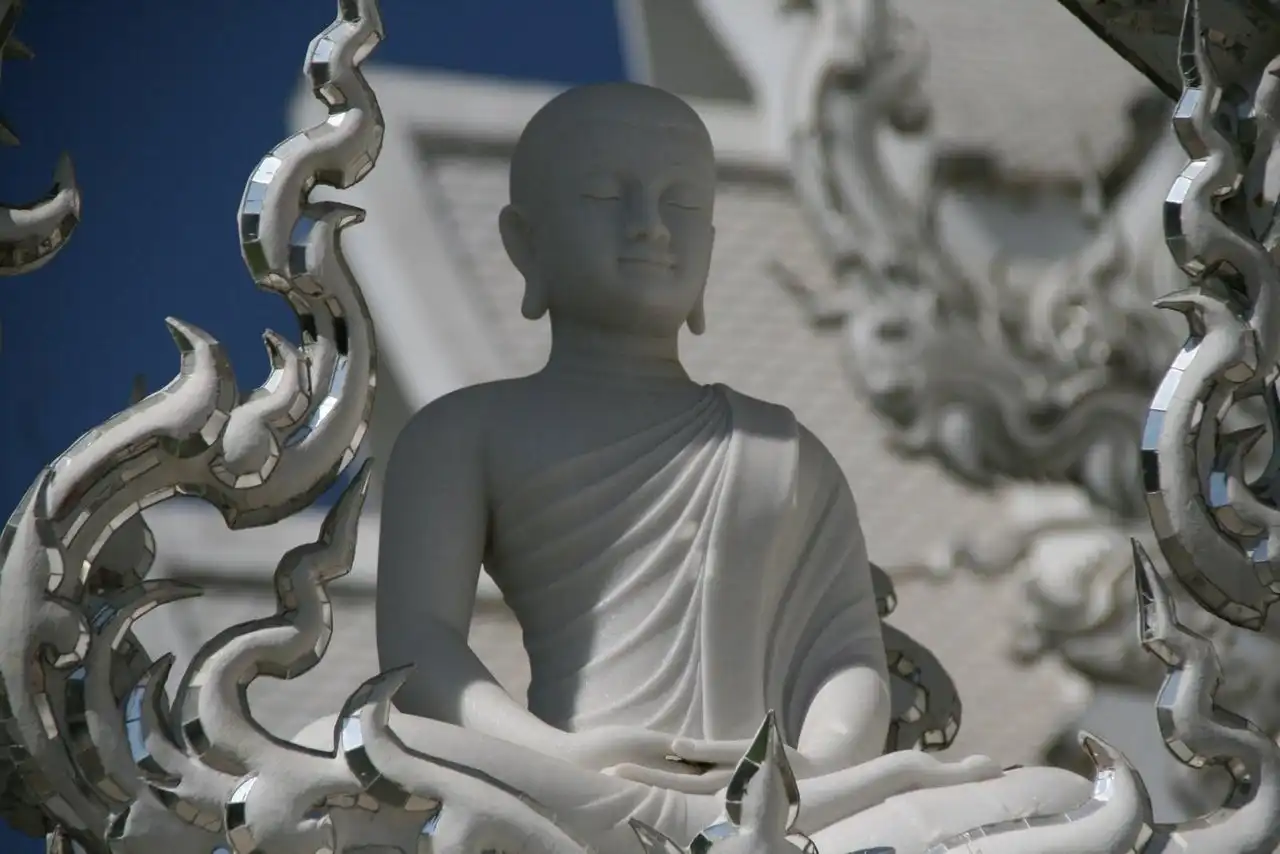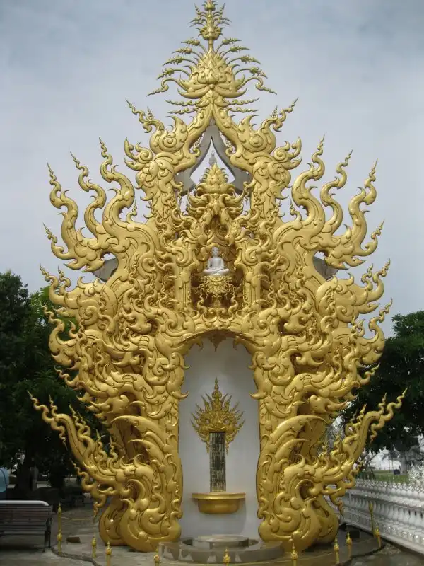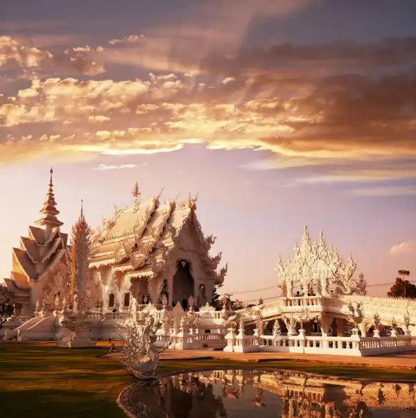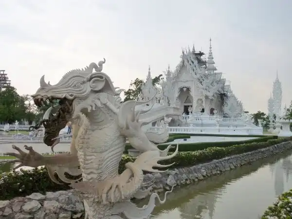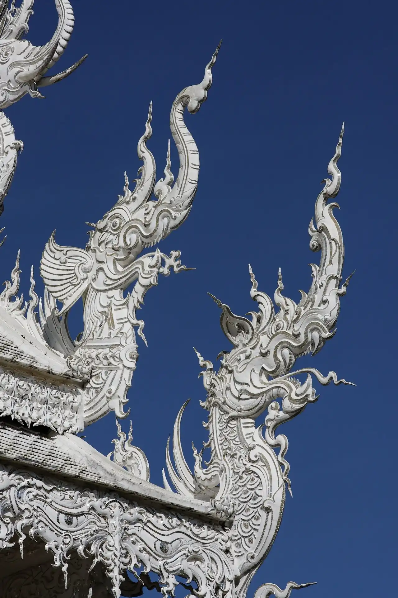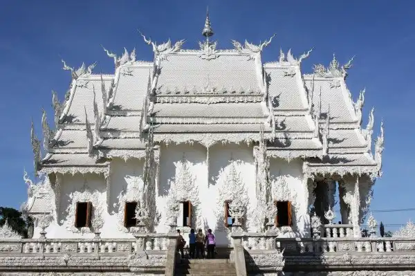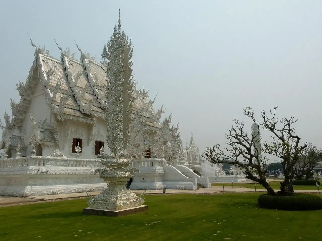 Расположенный в провинции Чианг Рай, храм Wat Rong Khun во многом отличен от других храмов Таиланда. Выполненный в белом цвете, он как бы подчеркивает чистоту Будды, а сверкающее стекло говорит о сияющей как на земле, так и во всей Вселенной мудрости Будды. Каждый элемент и архитектурная форма несут какую-то смысловую нагрузку. Например, мост видится как переход от бесконечных циклов перерождений к обители Будды, а полукруг перед мостом символизирует земной мир.