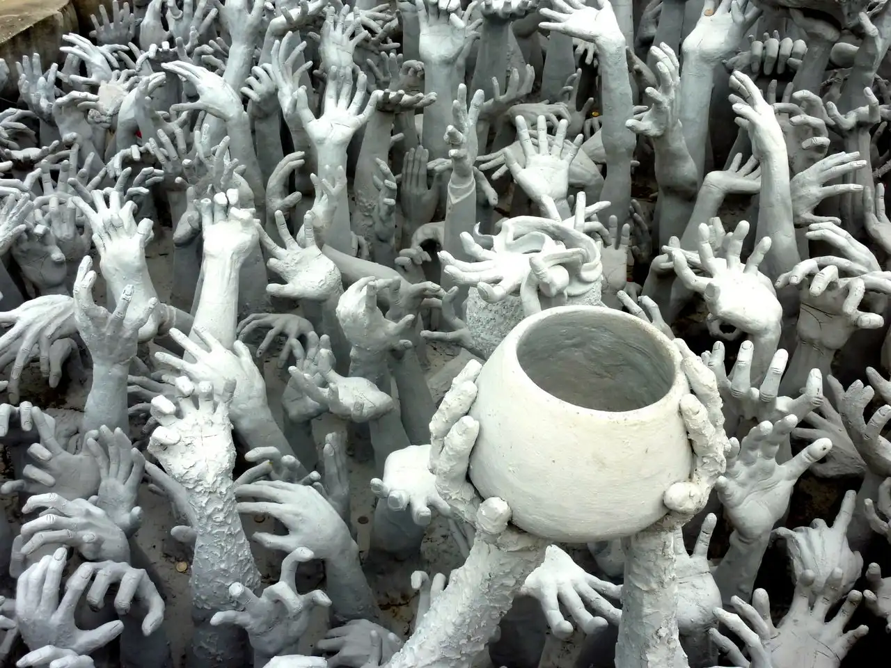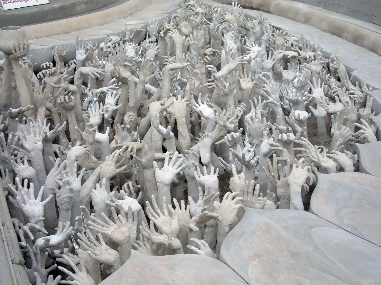 Смысл композиций большинства скульптур понять очень сложно. Тут вам и столь привычные для Азии драконы, и сотни рук, которые тянутся к вам, будто желая схватить. При чём, если драконы изображены очень миролюбивыми существами, то скульптуры рук довольно зловещи!