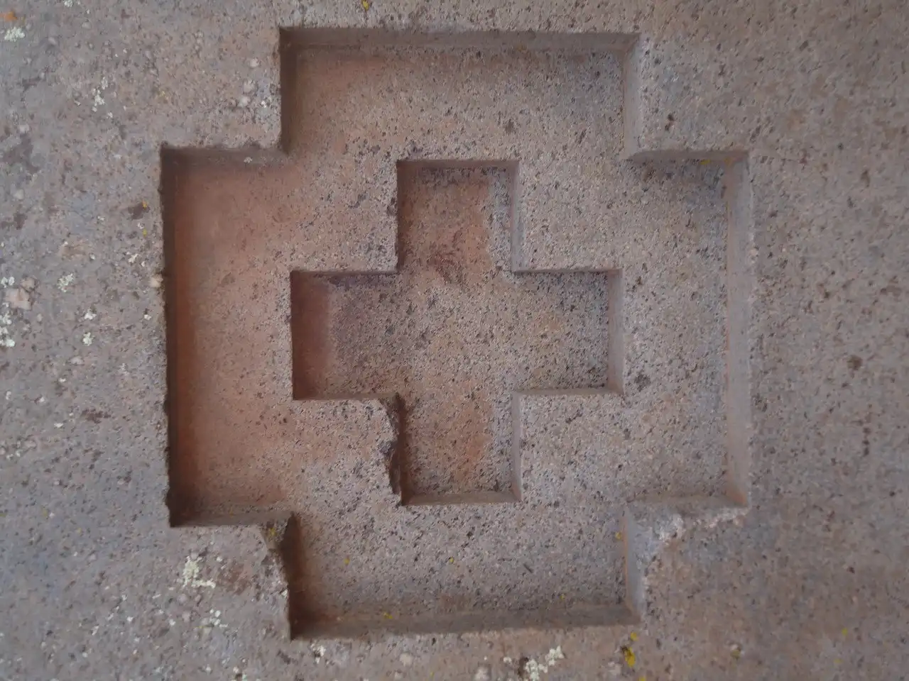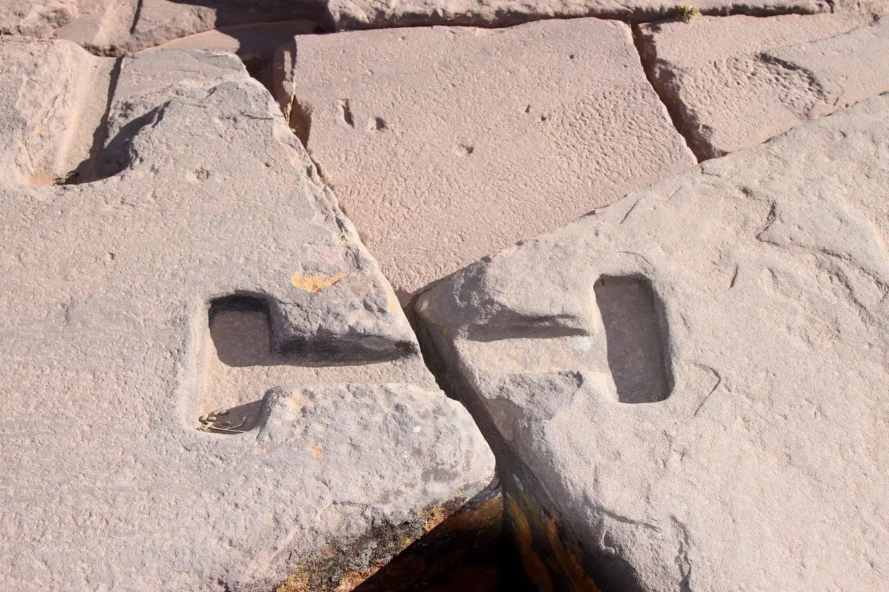 Практически не вызывает сомнений, что массивные плиты служили фундаментом для некоей конструкции. Причем фундаментом, который должен был обеспечить прочность и надежность всего сооружения в столь сейсмоопасном регионе. Для этого блоки платформы были дополнительно соединены между собой специальными металлическими стяжками – причем не только и не столько привычной для Южной Америки «Т»-образной формы, сколько более похожими на толстые скобы.