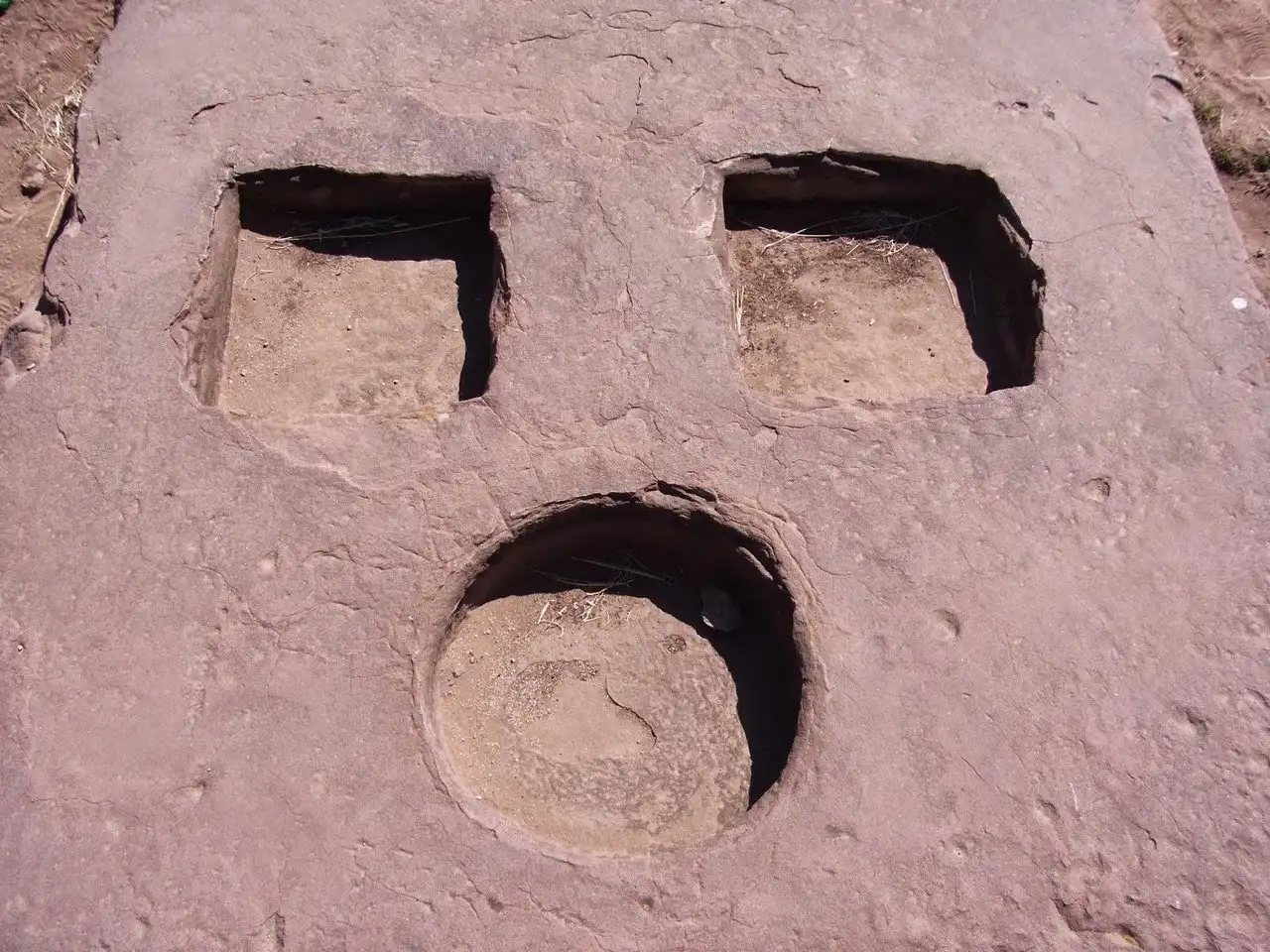 Однако это – далеко не единственный объект в Южной Америке со следами целенаправленных взрывов. Часть из них уже упоминалась ранее – это чульпы в Силустани, «Взорванный Храм» в Саксайуамане, Кенко-1 и Кенко-2. А за следующим примером даже не надо далеко ходить – всего-то пройти те самые восемьсот метров, которые отделяют Пума-Пунку от основного комплекса Тиауанако.