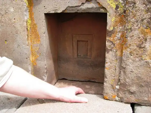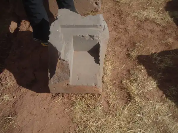 Между тем за несколько часов нашего пребывания в Пума-Пунку сюда не заглянул ни один турист, хотя за это время прибыло десятка два-три автобусов из Ла-Паса. Организованных экскурсий сюда не водят, так что Пума-Пунку чаще всего пустует. Все туристы дружно устремляются только на основную часть комплекса Тиауанако. А зря!.. Ведь именно в Пума-Пунку находятся, пожалуй, самые впечатляющие примеры высокотехнологичной обработки гранита.