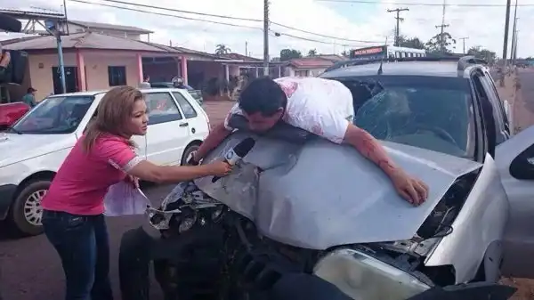 Бразильский корреспондент берет интервью у участника аварии: "Добрый день! Вкратце, расскажите об аварии!"