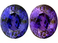 Визуально сапфиры и рубины очень сильно отличаются друг от друга — сапфиры имеют глубокий синий оттенок, а рубины — красный. Тем не менее, это один и тот же камень — корунд, представляющий собой кристаллическую форму оксида алюминия. Разница в цвете достигается за счёт посторонних примесей.