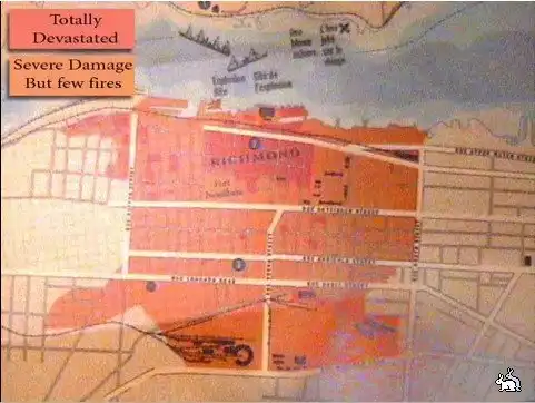 Разрушения были огромными, ровно как и количество погибших и раненых. Многие из раненых замерзли в обломках – на следующий день температура резко упала и начался сильный буран. Некоторые сгорели заживо, потому что по всему городу от разрушений начались пожары, полыхавшие несколько дней.