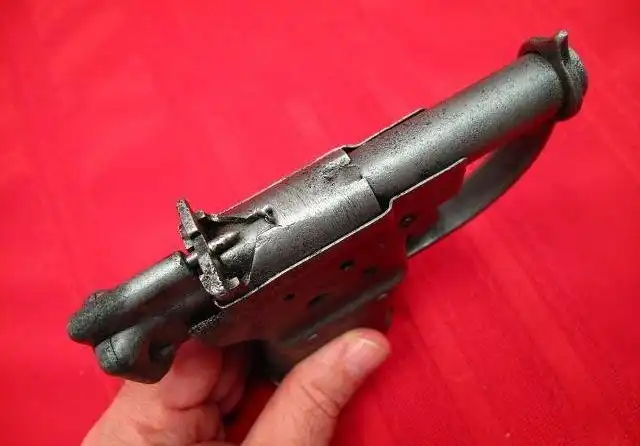 В результате ударник вставал на боевой взвод, а боек располагался точно напротив отверстия в центре пластины-затвора и напротив капсюля патрона. После нажатия на спусковой крючок происходит выстрел.