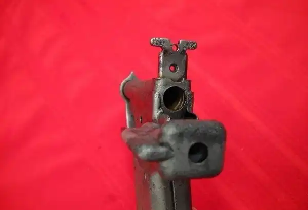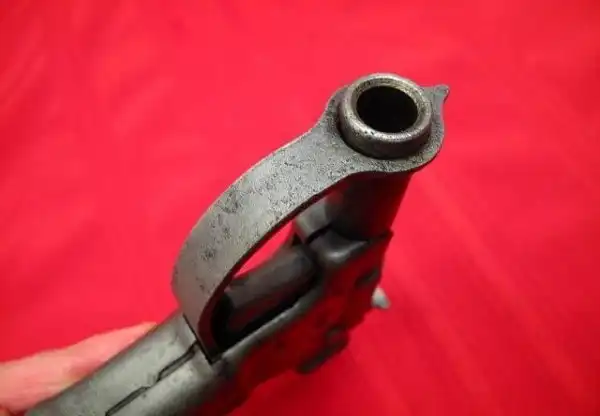 В большинстве источников указывается, что на поверхности пистолета отсутствовали какие-либо маркировочные обозначения. Однако я на одном из аукционов увидел пистолет с маркировкой на левой части поверхности ствола.