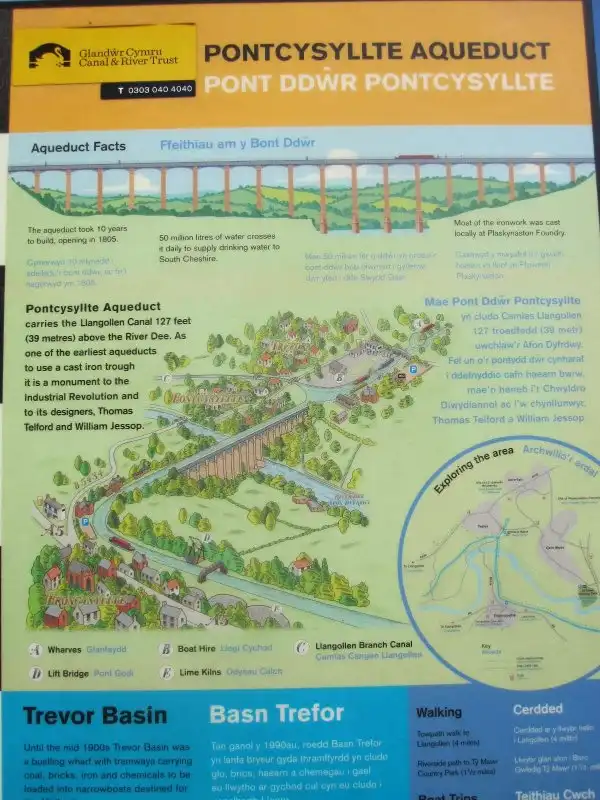 18-километровый акведук Понткисиллте и канал — выдающееся произведение инженерного искусства эпохи промышленной революции — был построен в самом начале XIX века. Создание канала, пролегающего по местности с очень сложным ландшафтом, потребовало новых смелых инженерных решений, особенно если учесть, что канал строился без использования шлюзов. Акведук, который можно считать шедевром инженерной мысли и монументальной металлической архитектуры, был построен по проекту прославленного инженера Томаса Телфорда. Параллельное использование как литых металлических, так и кованых чугунных конструкций позволило сделать арки акведука легкими и прочными, отчего сооружение приобрело монументальный и вместе с тем элегантный облик. В целом, сооружение стало шедевром творческой мысли и замечательным примером синтеза накопленного к тому времени в Европе инженерного опыта. Это сооружение считается вехой в истории гражданской инженерии и образцом для подражания во всем мире.