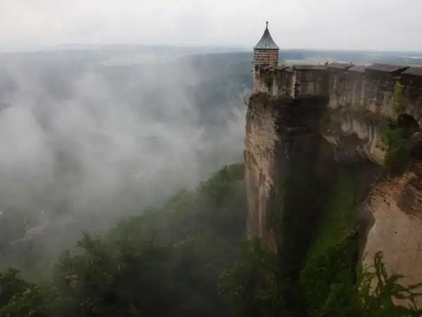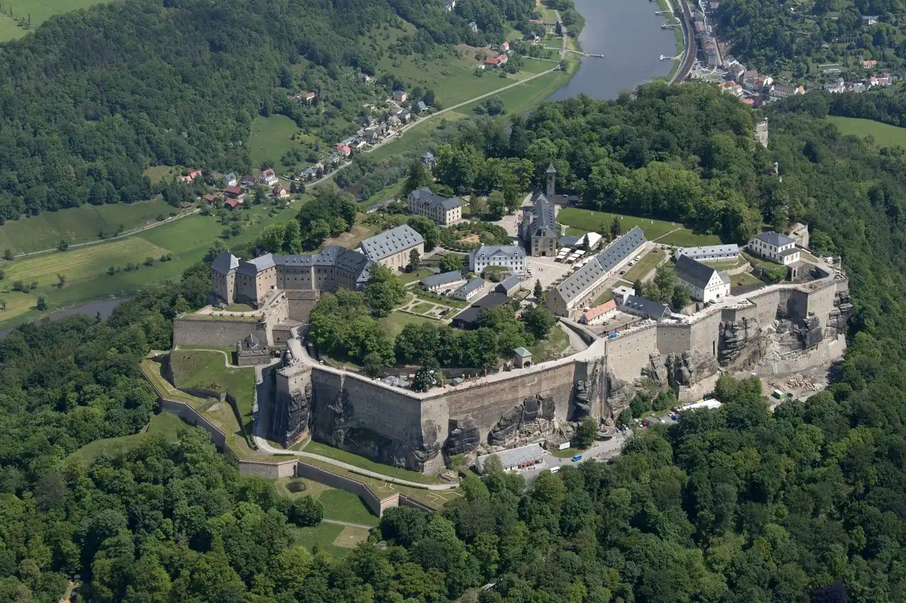 Крепость Кенигштейн (нем.Festung Königstien) Расположена на одноименной горе, на левом берегу Эльбы, в 15 километрах от города Пирна и в 30 километрах от столицы Саксонии города Дрездена. Возвышающаяся над Эльбой на 240 метров (361 над уровнем моря), крепость занимает площадь около 9,5 га, что примерно составляет 550 метров в длину и 310 м в ширину, высота крепостных стен от 36 до 42 м.