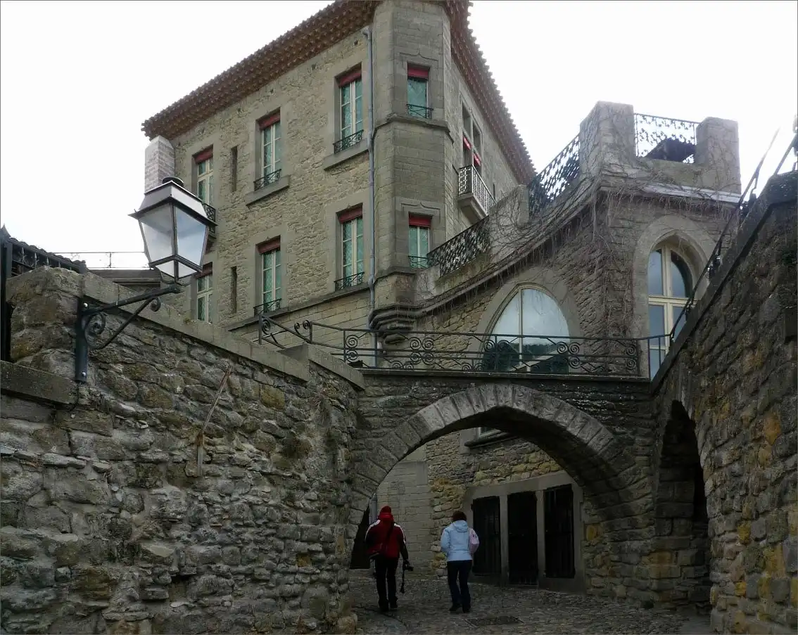 Длина моста — 74.5 метра Он перекрывает своими 7 дугами ущелье Mardertelle глубиной 40 метров. Часть старых скал, в прошлом используемых как укрепленный район, огорожены и летом туда вход платный. А в двадцатиградусный мороз — бесплатный. Поэтому можно зайти и посмотреть что там и как.
