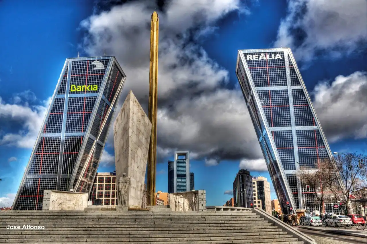 Надо сказать, что, несмотря на то, что башни не являются самыми высокими сооружениями в Мадриде, они все же очаровывают взгляд вновь приезжих. Падающие небоскребы придают городу особое очарование, делают его более современным и в то же время контрастным на фоне многочисленных средневековых дворцов. Башни сделали еще более привлекательными в эстетичном плане, когда установили между ними белокаменный обелиск в честь известного политика Хосе Кальво Сотело.