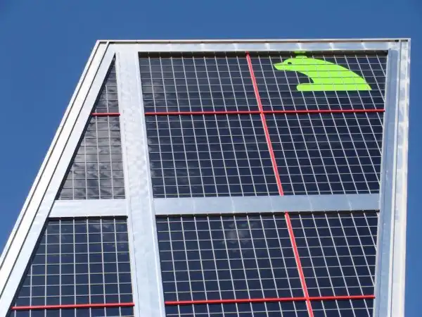 На крышах ультрасовременных небоскребов предусмотрены разноцветные вертолетные площадки. Площадка левой башни голубая, а на правой красная. Одной из башен недавно владела финансовый конгломерат Caja Madrid, что можно понять по заметному логотипу на стеклянном фасаде. Другая башня является собственностью испанской строительной фирмы Realia, которая так же поместила свой логотип на стометровой высоте.