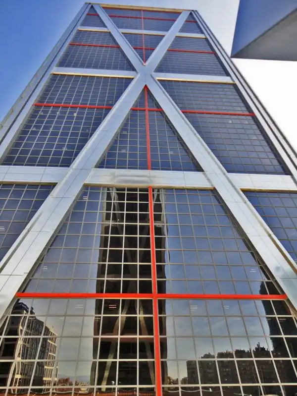 Главное отличие грандиозного архитектурного комплекса от пизанской конкурентки в том, что итальянская башня «падает» в силу непродуманности архитектора, а испанские небоскребы это глубоко просчитанное детище талантливых американских инженеров Джона Берджа и Филиппа Джонсона.