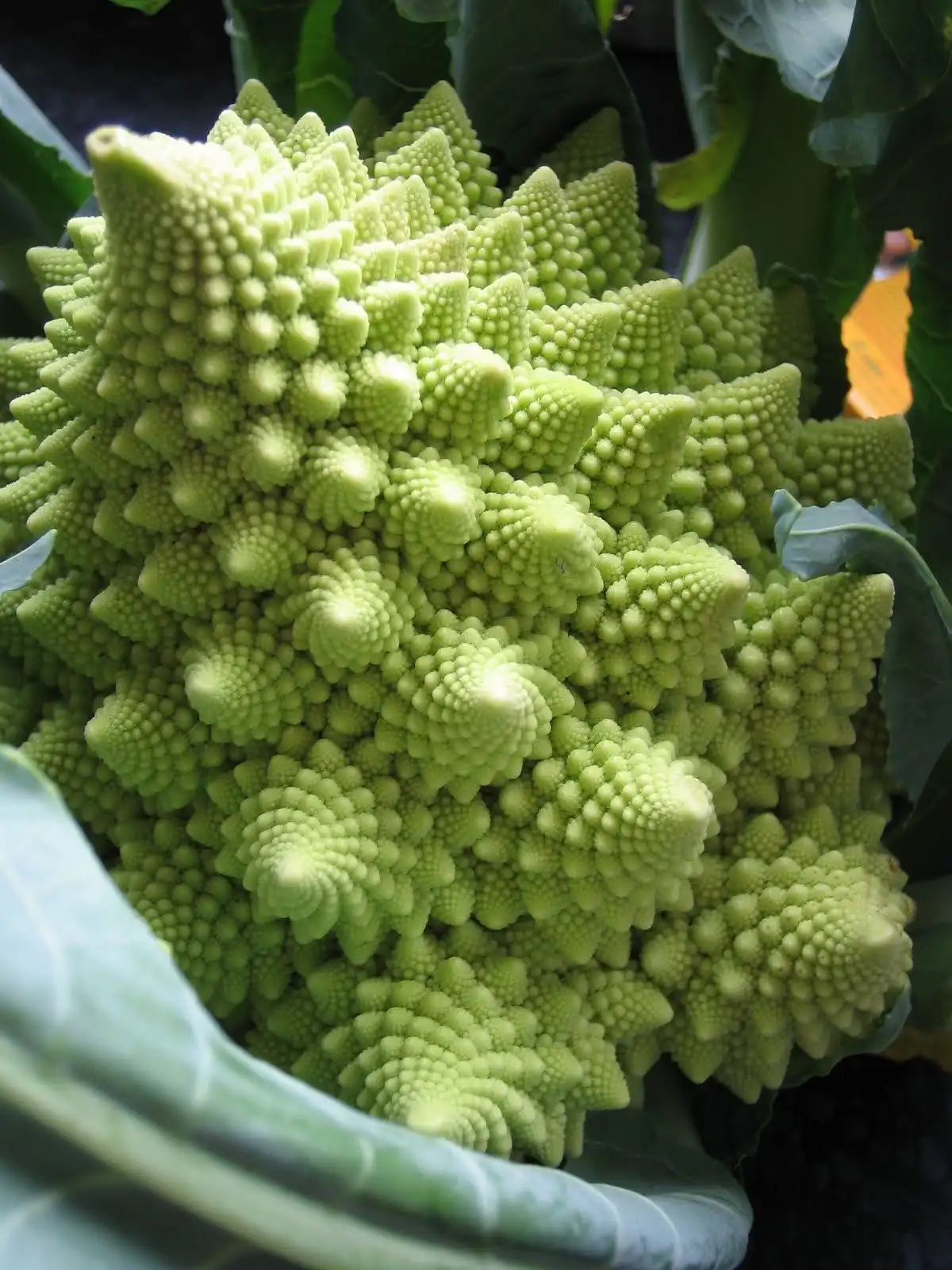 Многие дети терпеть не могут математику и капусту, а капуста романеско — это два в одном. Зато взрослые могут в полной мере оценить этот овощ. Капуста романеско выглядит, как фрактал — сложная геометрическая форма, в которой каждая малая часть выглядит точно так же, как и большие части. В нашем случае капуста состоит из мелких цветков, которые в свою очередь состоят из цветочков поменьше точно такой же формы, а те — из ещё более маленьких.