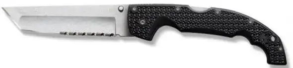 Популярным материалом рукоятей для ножей является также G-10. Это стеклотекстолит, который изготавливается на основе стеклоткани и эпоксидных связующих. G-10 негорючий влагостойкий материал, обладающий диэлектрическими свойствами. В результате добавки красителей, можно получать изделия различного цвета. Из недостатков материала G-10 можно отметить ухудшение прочностных характеристик при низких температурах.