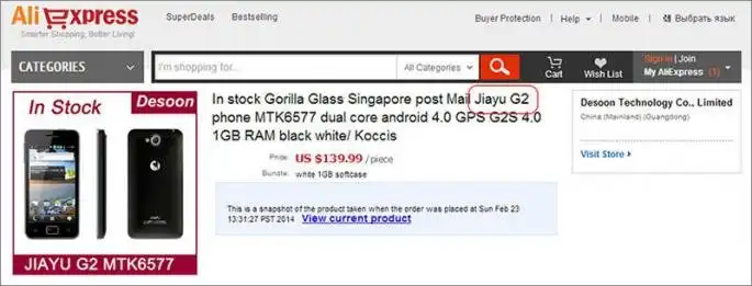 Перейдем по ссылке этого товара и увидим, что с этой же страницы ранее также продавался телефон Jiayu G2.