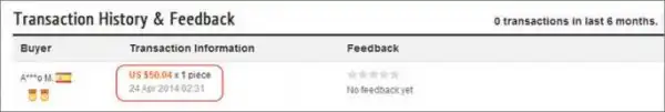 Если купить этот товар, то запись об этом отразиться в разделе Transaction History & Feedback (в самом низу страницы).