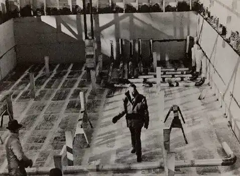 Строительство судна Habakkuk. Укладка первого слоя блоков.