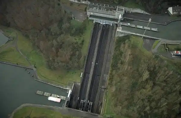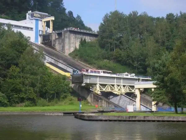 Канал был очень узким по этому не могло одновременно пройти 2 баржи. В результате объявился международный конкурс, в котором представили самые различные проекты судоподъемников. И был выбран поперечный судоподъемник. В то время существовал по такому подобию всего один наклонный судоподъемник в графстве Лестершир, Англия, который построен в 1900 году.