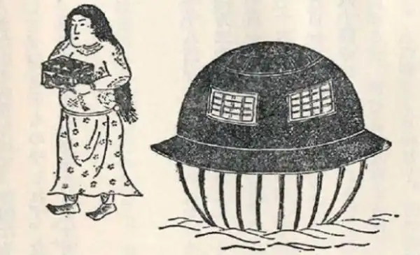 Одна из версий этой истории была записана в 1825-м году, другая — в 1844-м. В обеих версиях японские моряки случайно замечали в море странное судно. Оно было круглым, что само по себе выглядело необычно...