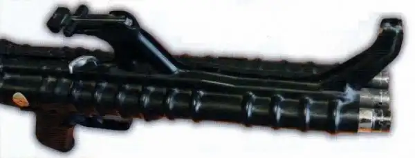 Все три ствола в этом оружии собраны в одном лафете и имеют единую подвижную систему автоматики, что позволило реализовать залповый огонь, при котором темп стрельбы достиг 1400-1800 выстрелов в минуту.