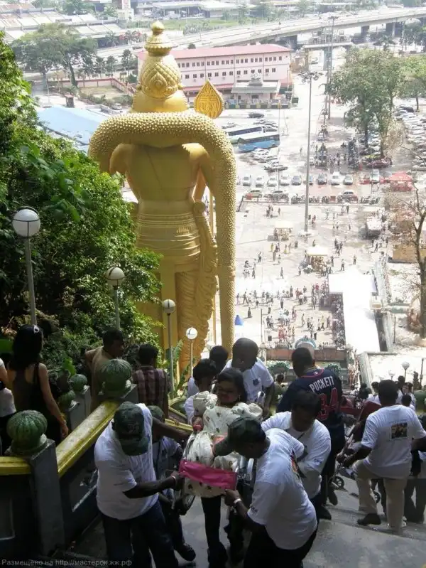 Раз в год – в конце января - сюда стекаются все малазийские индусы и отмечают религиозный праздник Тайпусам в честь бога Муругана. Под звуки религиозных гимнов, читая молитвы, верующие вносят статую своего божества в главную - Храмовую пещеру. Для этого им приходится преодолеть 272 ведущие вверх ступени. По рассказам очевидцев, во время праздничного восхождения охваченные религиозным экстазом отдельные участники церемонии несут на себе кавади – деревянные рамы, которые крепятся к их телам острыми железными спицами и крючками. Можно представить эту картину: медленно движущиеся окровавленные люди, находящихся в состоянии транса и подбадриваемые барабанным боем и криками паломников. Зрелище не для слабонервных.