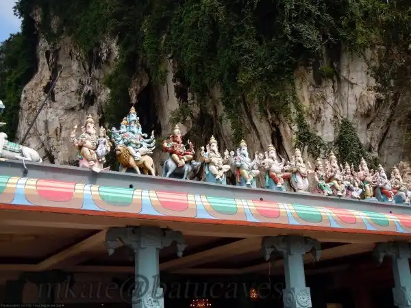 Снаружи у пещер повсеместно установлены статуи богов и богинь. В 2006 году в Бату-Кейвз была установлена статуя божества Муругана. Высота статуи божества Муругана 42,7 метра. Это самая высокая статуя индусского божества в мире. Статуя, стоимость которой около 24 млн. рупий, состоит из 1550 кубических метров бетона, 250 тонн арматуры и 300 литров золотой краской привезенной из соседнего Таиланда.