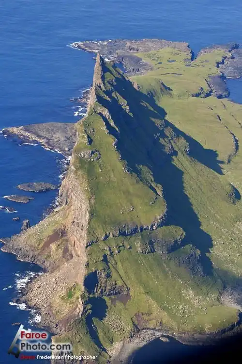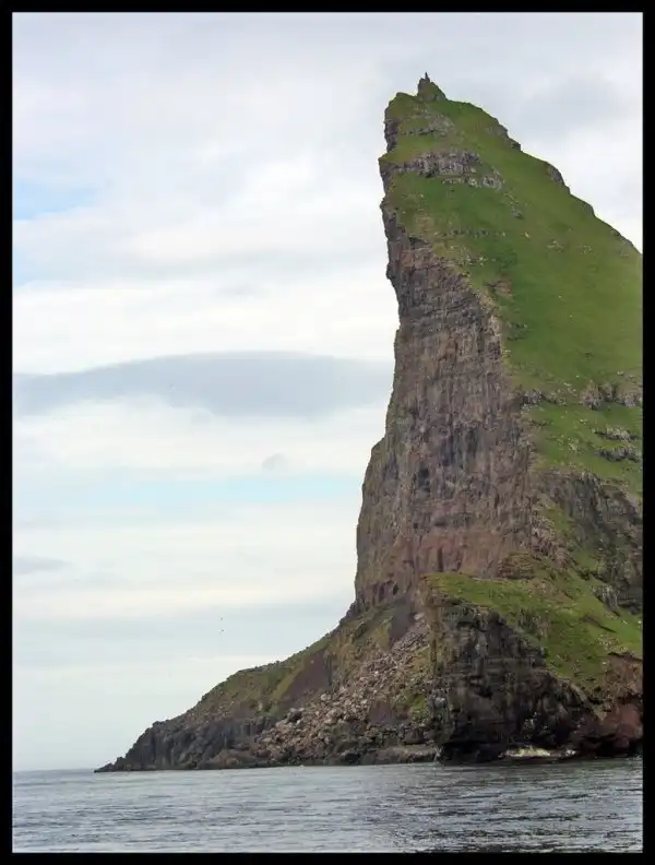 Тиндхельм получил свое название от пяти базальтовых скалистых пиков — Арни, Утсти, Литли, Богди и Брейди (Орел, Дальний, Маленький, Изогнутый, Широкий). Самый высокий, напоминает трамплин в небо высотой в 262 м. Сама скала называется Эйриксбоди. А ее изображение есть даже на 200-кроновой банкноте Фарер. Тропическое морское течение Гольфстрим, смягчая климат Фарер и острова Тиндхолмур, обеспечивает постоянную круглогодичную температуру воды вокруг него +10°С. Средняя температура летом +12°С. А частые туманы здесь делают островные пейзажи весьма привлекательными.
