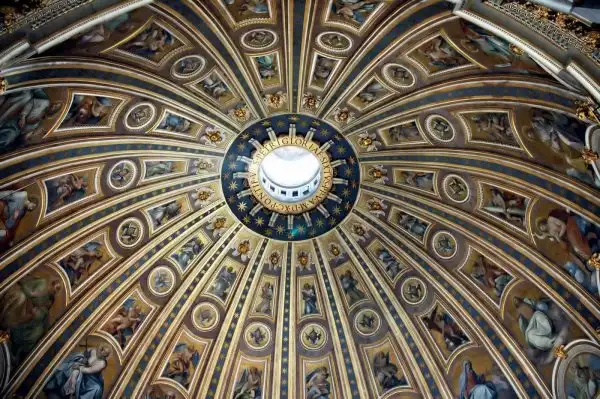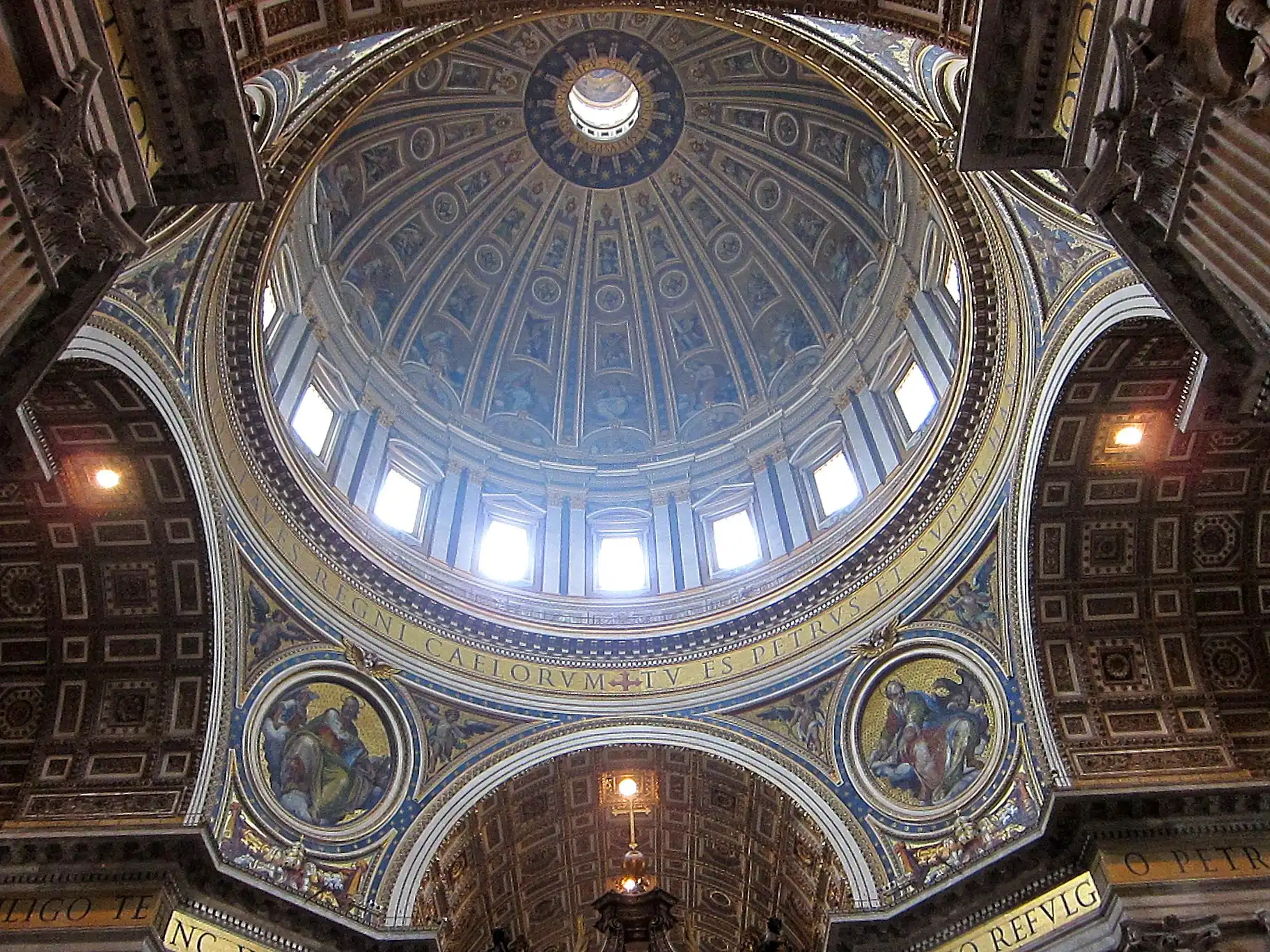 Хотя Микеланджело и спроектировал купол, но увидеть собор завершенным ему не суждено было. Он успел возвести лишь барабан для купола. Круглый свод был закончен лишь в 1590. В венчающем купол так называемом глазе помещена надпись, прославляющая папу Сикста V, в последний год понтификата которого было завершено строительство собора св. Петра. Высота купола до верхушки креста 136,57 м, его внутренний диаметр – 42,56 м.