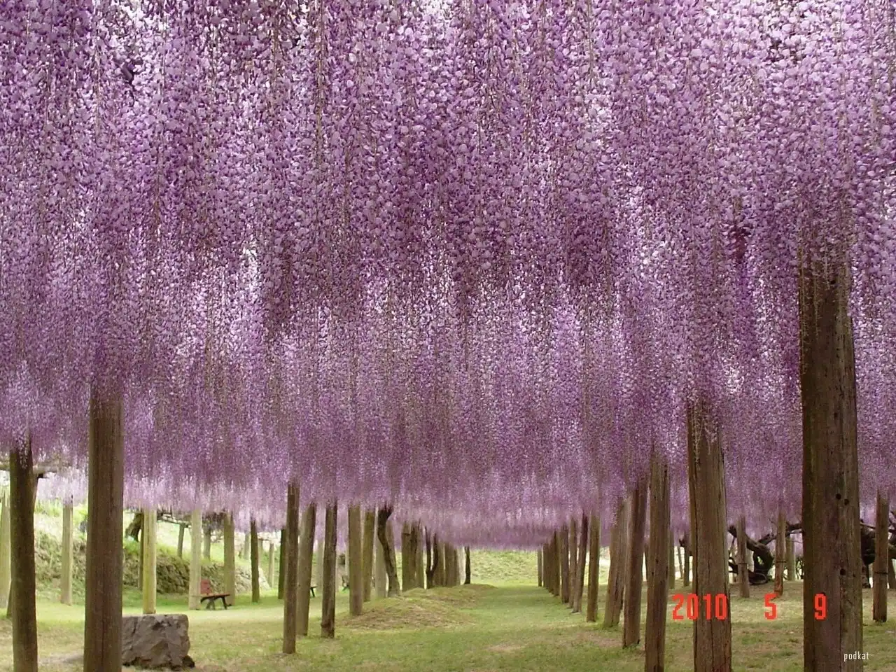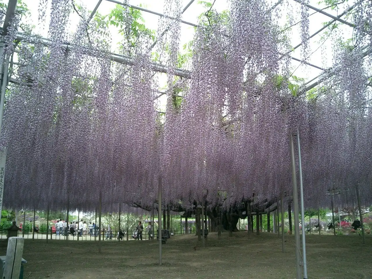 Японский парк цветов Асикага (Ashikaga Flower Park) находится в одноименном городе Асикага провинции Точиги, в самом сердце о. Хонсю. Парк занимает площадь около 20,3 гектара и знаменит 100-летней глицинией. Асикага считается одним из лучших мест для просмотра цветущей вистерии. Крупные кисти душистых цветков придают просто фантастический вид парку.