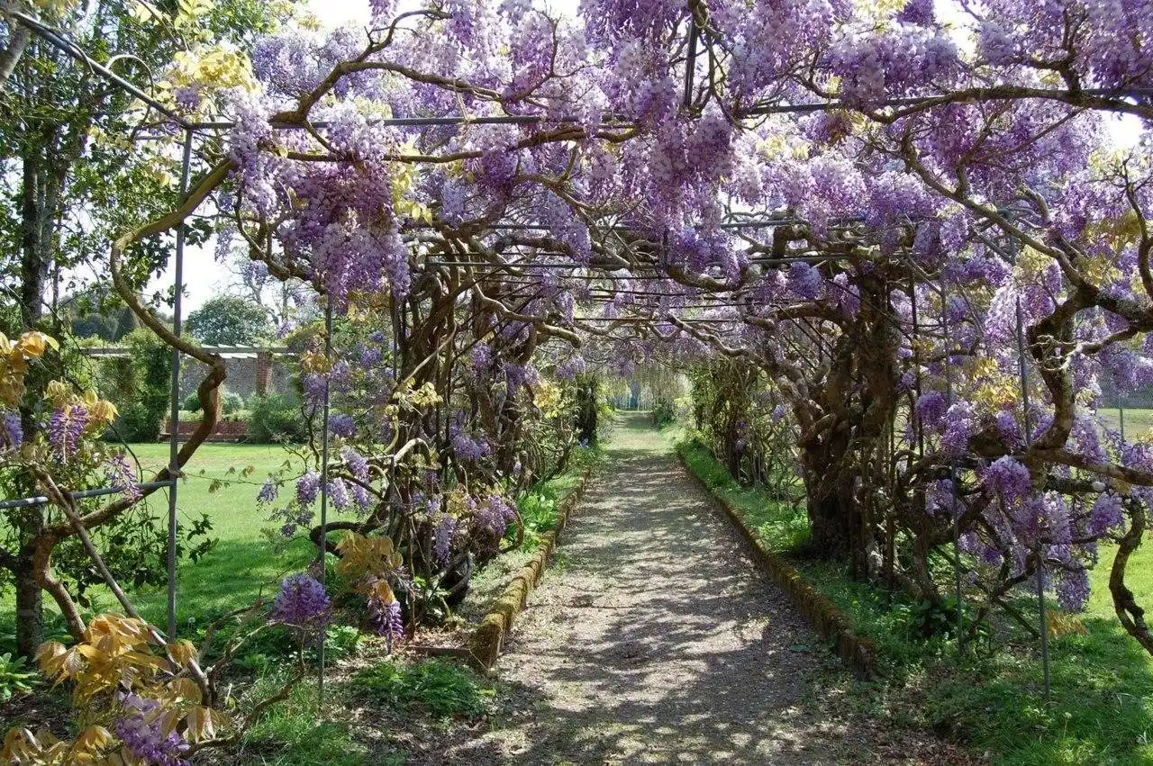 Чтобы увидеть сад в полном цвету, надо приезжать сюда ближе к середине мая. Не каждый год глицинии цветут так пышно, но даже при слабом разрастании лиан можно получить очень красивые фотоснимки этого чудесного сада.