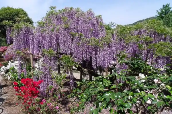 Японская вистерия встречается всех оттенков радуги, а ее свисающие ветки отлично смотрятся на специальных каркасах в форме тоннеля. Разумеется, самый популярный и самый красивый такой цветочный тоннель находится в саду Кавати Фудзи, и называется «Тоннель Вистерия».