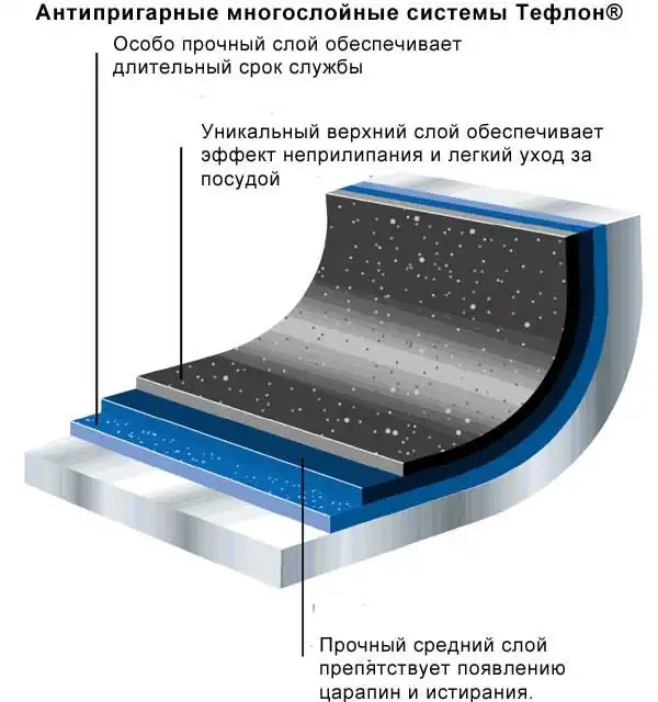 В силу своей биоинертности тефлон полностью безвреден для организма. Даже если полимерный слой поцарапан и мелкие частицы его попали в пищу — нет повода беспокоиться. Они без изменений проходят через желудочно-кишечный тракт и выводятся наружу.