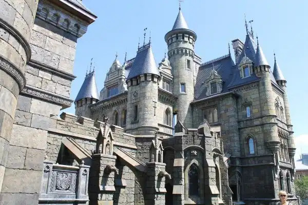 Если уж совсем точно – это единственный в своём роде современный замок в неоготическом стиле, построенный по принципу исторической реконструкции. Возможно, поэтому этот замок так любят реконструкторы. Однако это не копия какого-то конкретного замка, а скорее архитектурная фантазия на тему готики и романтизма.