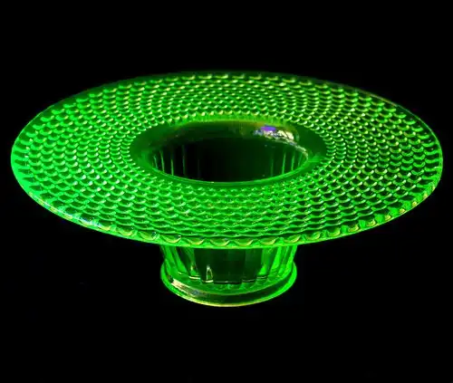 Урановое стекло — это стекло, окрашенное оксидом урана в цвета от прозрачно-желтого до глубокого желто-зеленого, бирюзового и даже голубого. Но не только своим цветом отличается это стекло. Основное его отличие , это то, что урановое стекло интенсивно флюоресцирует — горит в ультрафиолетовых лучах.