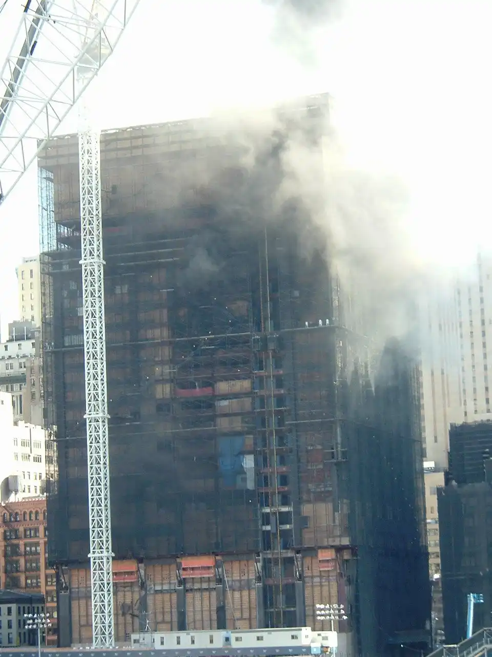 Собственно демонтаж начался в марте 2007 года. 17 мая того же года по неосторожности рабочих с высоты 35-го этажа упал кусок трубы длиной около 5 метров, ранены двое пожарных. 18 августа того же года в здании, на 17-м этаже, начался пожар. К тому времени в Deutsche Bank Building осталось уже лишь 26 этажей из 40. Причина пожара — нарушение рабочими техники безопасности (курение на рабочем месте). Огонь распространился на десять этажей, в результате пожара двое пожарных, Роберт Беддиа и Джозеф Граффаджнино (оба участники ликвидации последствий теракта 9/11), погибли, около 100 пожарных получили ранения. Из-за этой трагедии все работы в полуразобранном здании были приостановлены до мая 2008 года.