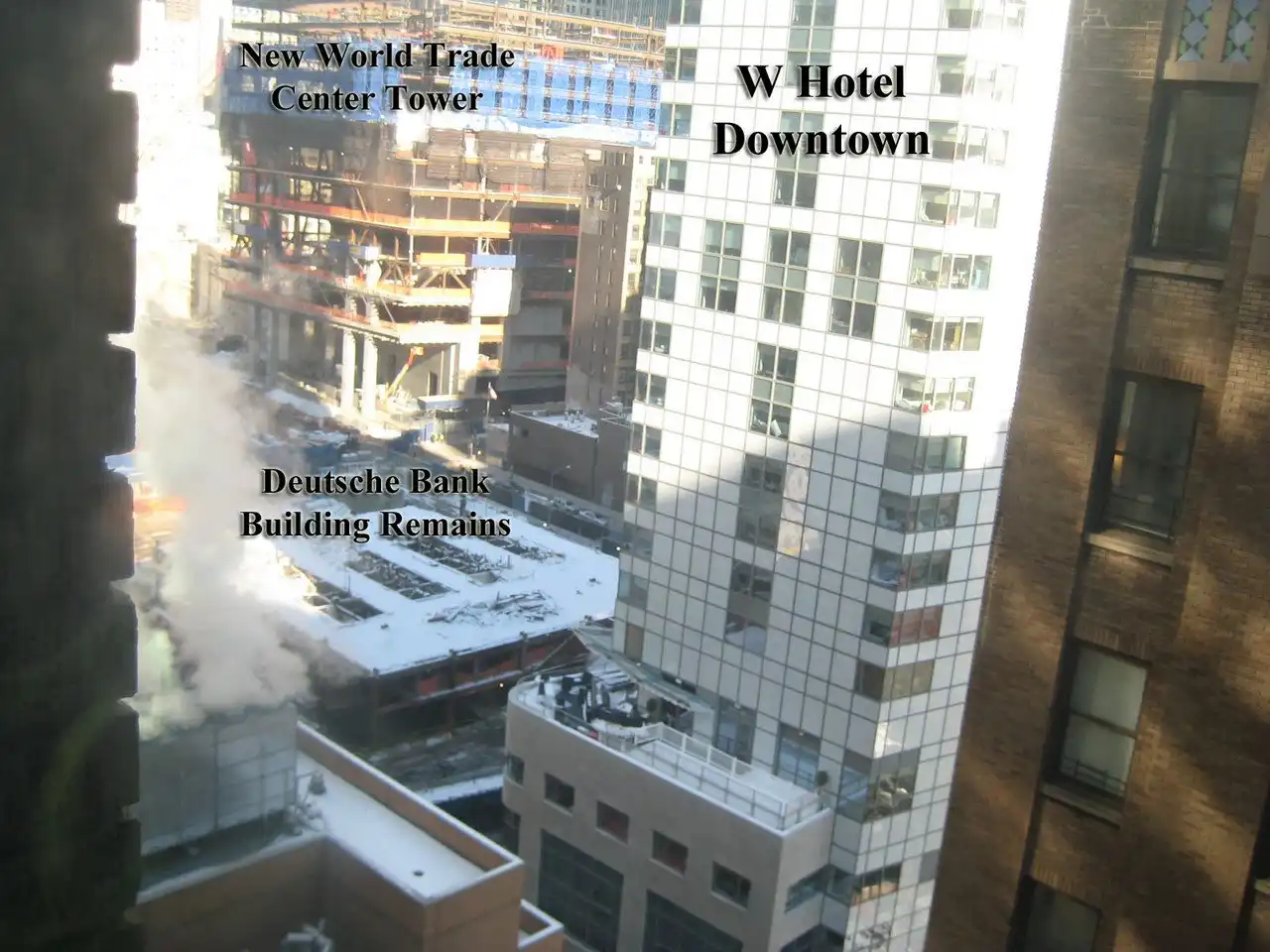 9 сентября того же года на очищенном месте компанией JPMorgan Chase началось возведение здания Всемирный торговый центр 5, окончание строительства намечено на 2015 год, расчётная высота — 42 этажа, 226 метров.