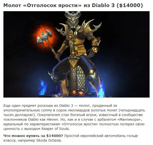 В XXI веке появилась категория людей, готовых платить немалые деньги за виртуальные предметы, которые они никогда не смогут иметь в реальном мире. Речь идет о состоятельных геймерах, покупающих различные игровые предметы, стоимость которых порой достигает десятков и даже сотен тысяч долларов.