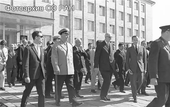 геологии и геофизики СО АН СССР академик А.А. Трофимук. Слева - М.А. Лаврентьев.