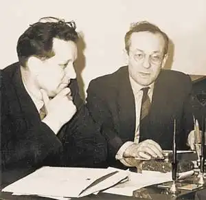 Слева — доктор технических наук профессор Л.П. Зиновьев (1912–1998), справа — академик АН СССР В.И. Векслер (1907–1966) в период создания синхрофазотрона