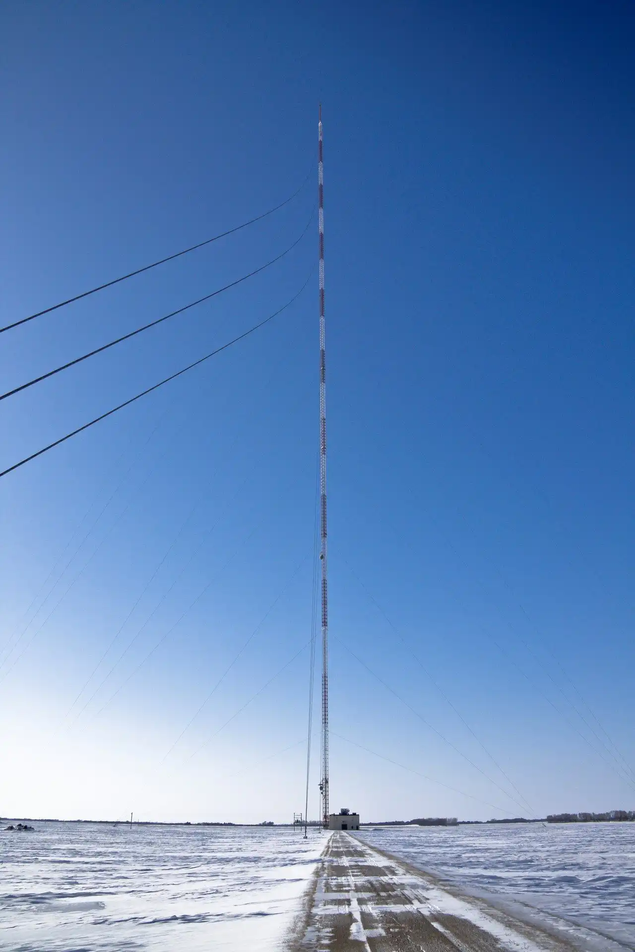 Так случилось с телерадиомачтой KVLY-TV в городе Блашар, расположенном в Северной Дакоте, США. Высота этой мачты 628 м, а передатчик размещается на высоте 610 м. Цифровой передатчик устроили несколько ниже: на высоте 576 м. Телерадиомачту в 1963-м году возвела компания «Хэмилтон элетрик компани». На строительство было потрачено $500 000. KVLY-TV стала самой высокой теле-радиомачтой в мире и даже самым высоким сооружением.
