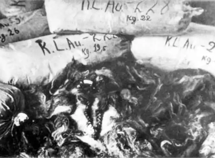 Столько волос было обнаружено на текстильной фабрике Schaeffler после окончания войны. Их сбривали у узниц Освенцима до того, как их отправляли в газовые камеры. Именно волосы узников послужили материалом для ткани, из которой впоследствии шили грубую рабочую одежду.