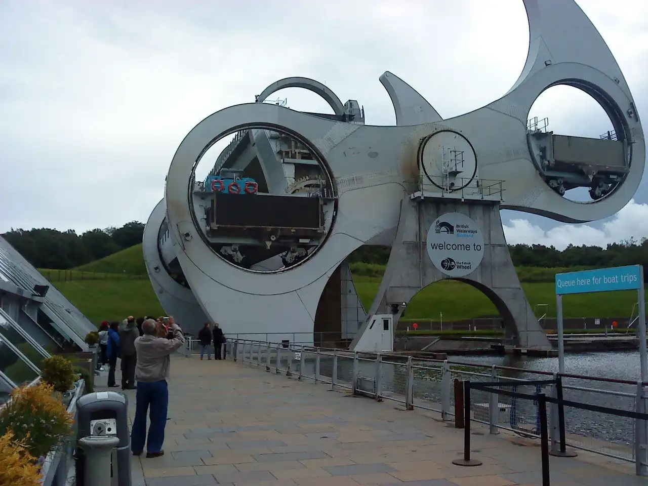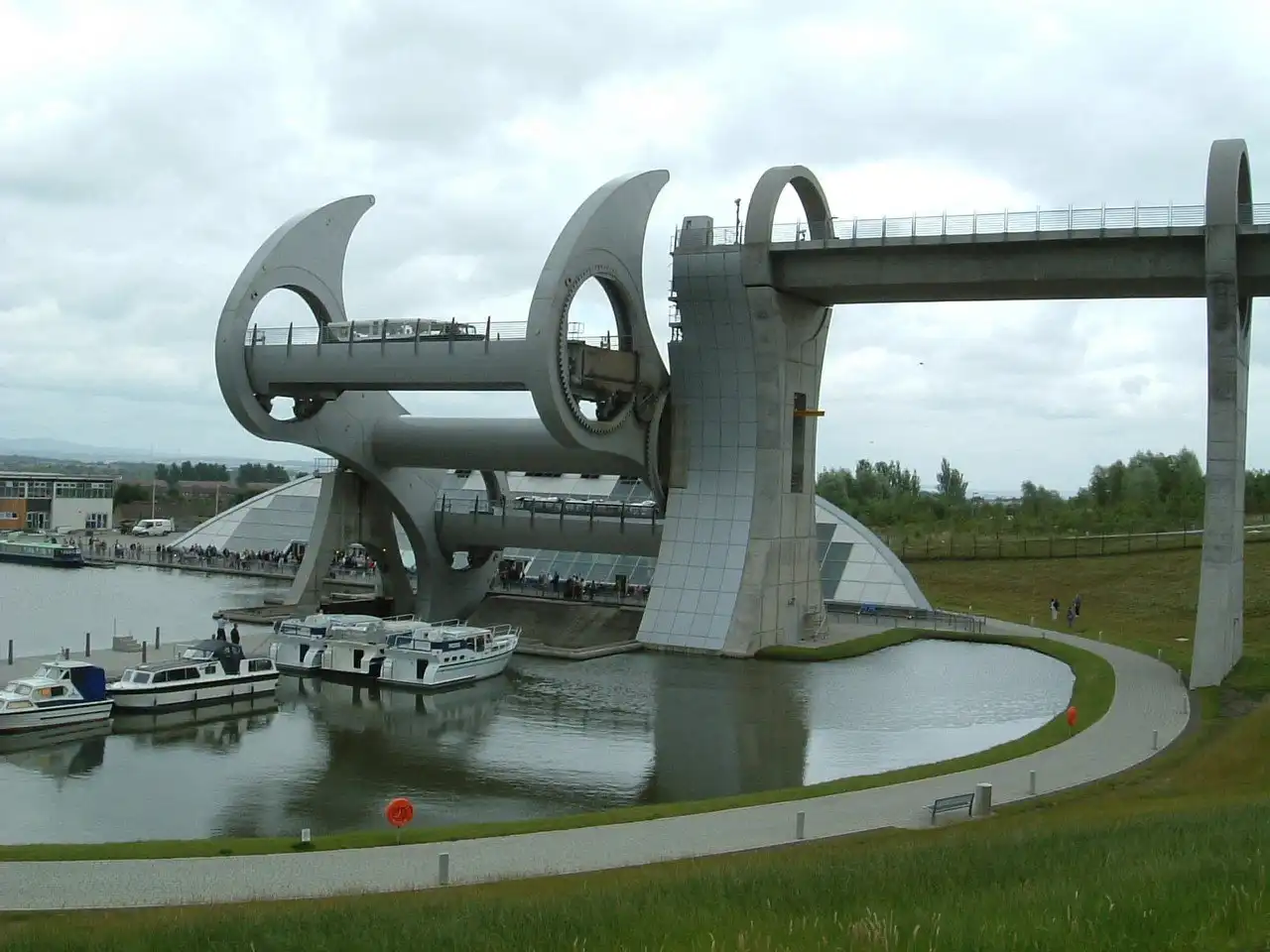Правительство Шотландии и в 1998 году утвердило фантастический проект «Миллениум Линк», дабы с энтузиазмом встречи нового тысячелетия решить заодно и практическую задачу убыстрения шотландской навигации. И, потратив 84.5 млн фунтов стерлингов, построили такой судоподъемник, который теперь используется не только по прямому назначению, но и стал еще одной достопримечательностью Шотландии. О нем написано во всех путеводителях, круиз по озеру с подъемом и спуском привлекает туристов со всего мира. Хотя к наступлению тысячелетия со строительством не успели – открыли его в 2002 году торжествами с перерезанием ленточки самой Королевой. Часть шлюзов все-таки оставили, и в месте, где построено Falkirk Wheel, высота перепада составляет 24 метра (как восьмиэтажный дом).